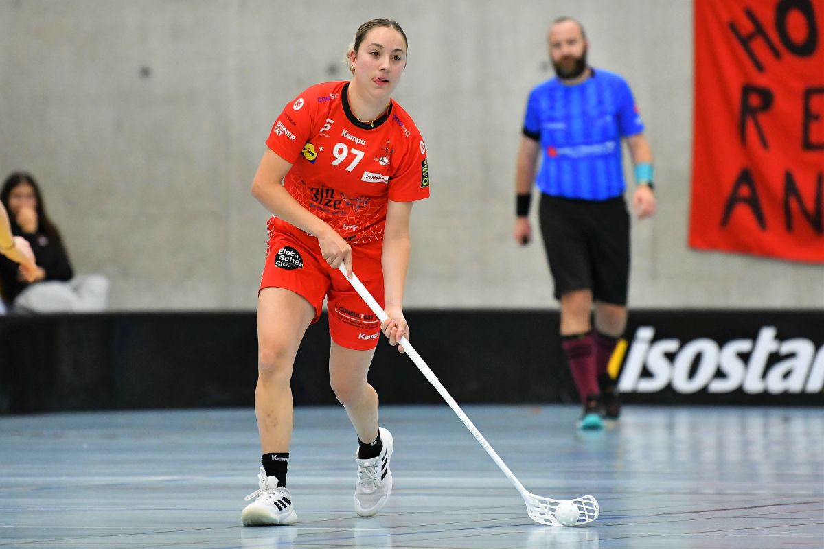 Céline Vaerini kam bereits in der Saison 2022/23 zu zwei UPL-Teileinsätzen für Piranha Chur. In zwei Jahren in der U21 der Jets kamen keine weiteren Spiele im Oberhaus dazu, daher wechselte sie im Sommer zu den Red Ants. Beim ersten Einsatz für die Winterthurerinnen feierte sie also zwar nicht ihr UPL-Debüt, dafür gelangen der 20-Jährigen gleich drei Tore - es war ein lupenreiner Hattrick vom 3:1 zum 6:1 in zehn Minuten.