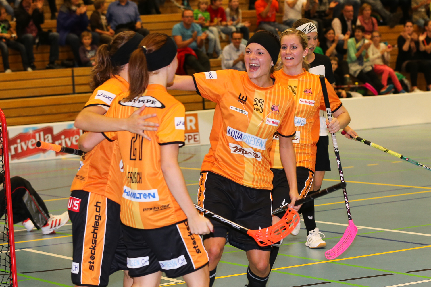 Piranha Chur grüsst nach fünf NLA-Runden wieder von der Tabellenspitze: Die Churerinnen schlugen im gestrigen Nachtragsspiel Zug dank einer Steigerung nach Spielmitte 6:3.