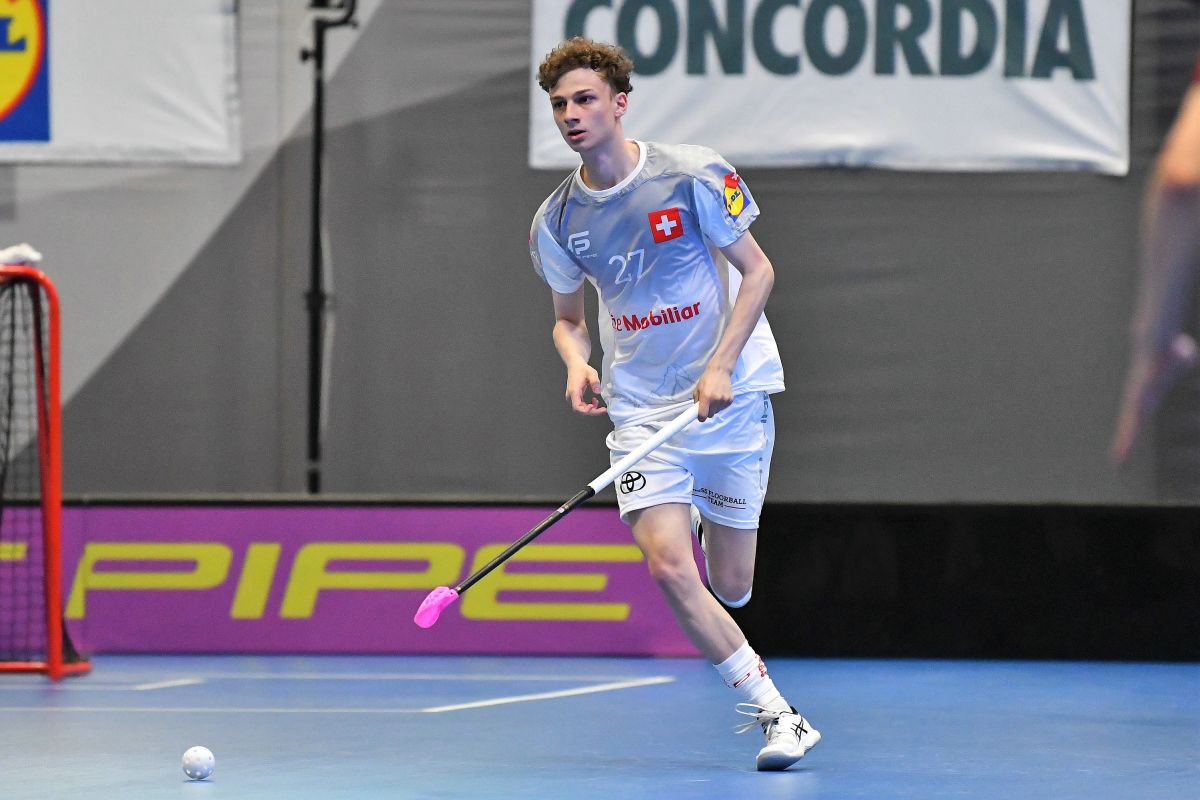 Feldspieler: Jano Eigenmann, Finn Ribler, Yannick Eugster, Lian Schefer (Floorball Thurgau), Naïm Büchi, Cedric Oberli, Cedric Buri (SV Wiler-Ersigen), Mateo Christen, Max Kiener (Unihockey Tigers Langnau), Mats Hofer, Nino Bühler (Floorball Köniz Bern), Noel Hug, Timo Renner (UHC Uster), Gian-Noah Lüthi, Andri Zoss (UHC Thun), Jon Stecher (HC Rychenberg Winterthur), Janis Frigg, Nico Niemack (Zug United)
